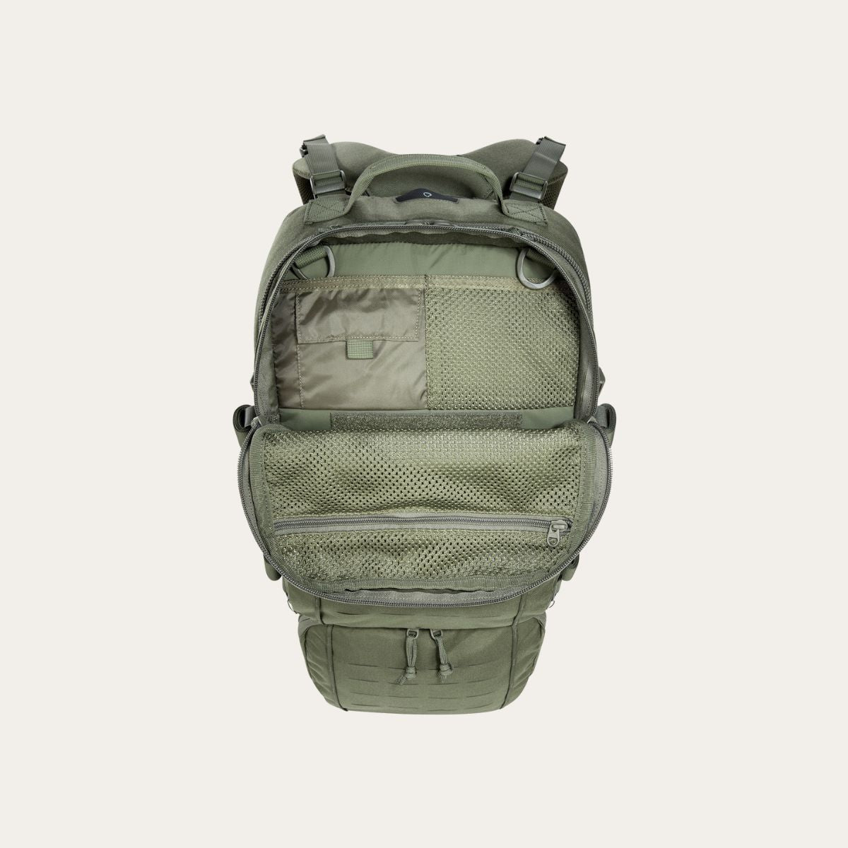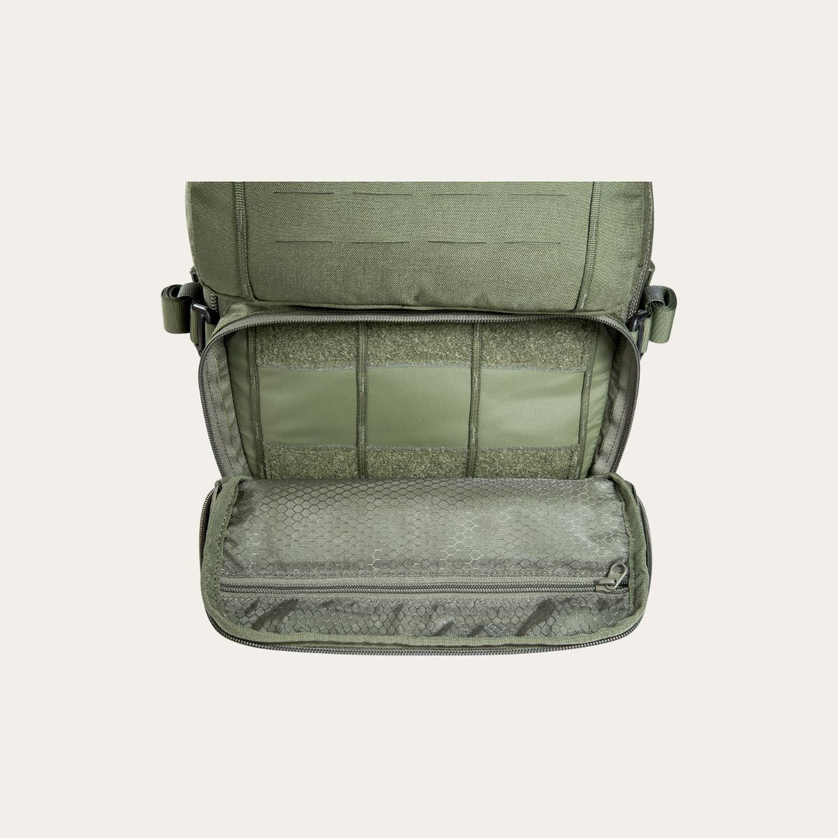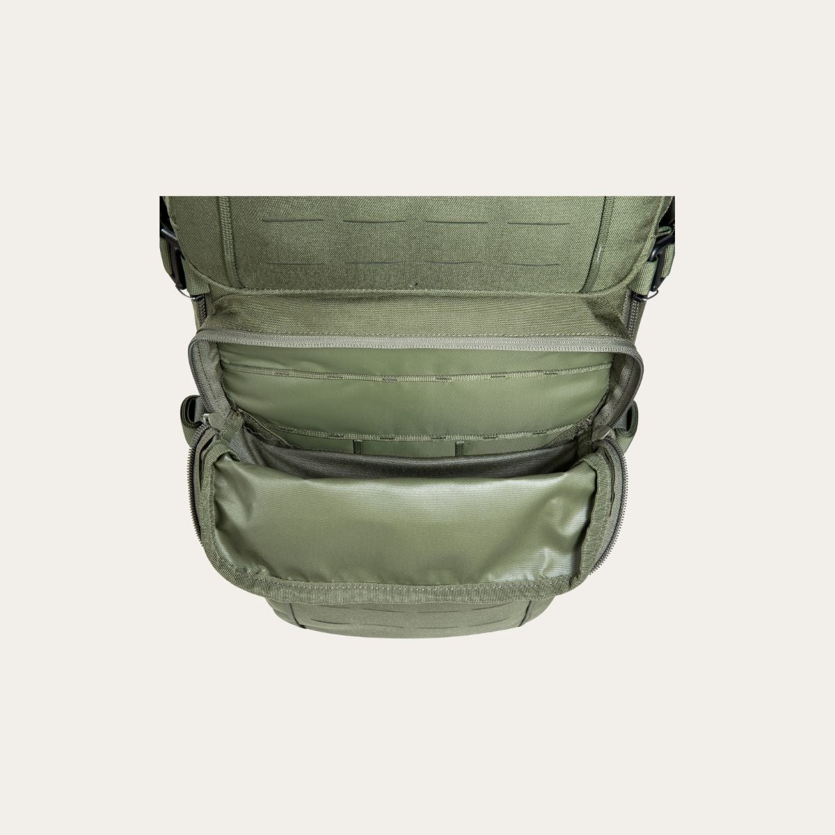 Dank der speziellen Wölbung am Reissverschluss lässt sich der TT Modular Combat Pack 24 SL sowohl als Frontloader für bequemes Be- und Entladen wie auch als Toploader für schnellen Zugriff von oben nutzen. Die doppelte Funktionalität ermöglicht Dir einen situationsabhängigen Zugriff auf Deine Ausrüstung, ohne den Rucksack vollständig öffnen zu müssen.