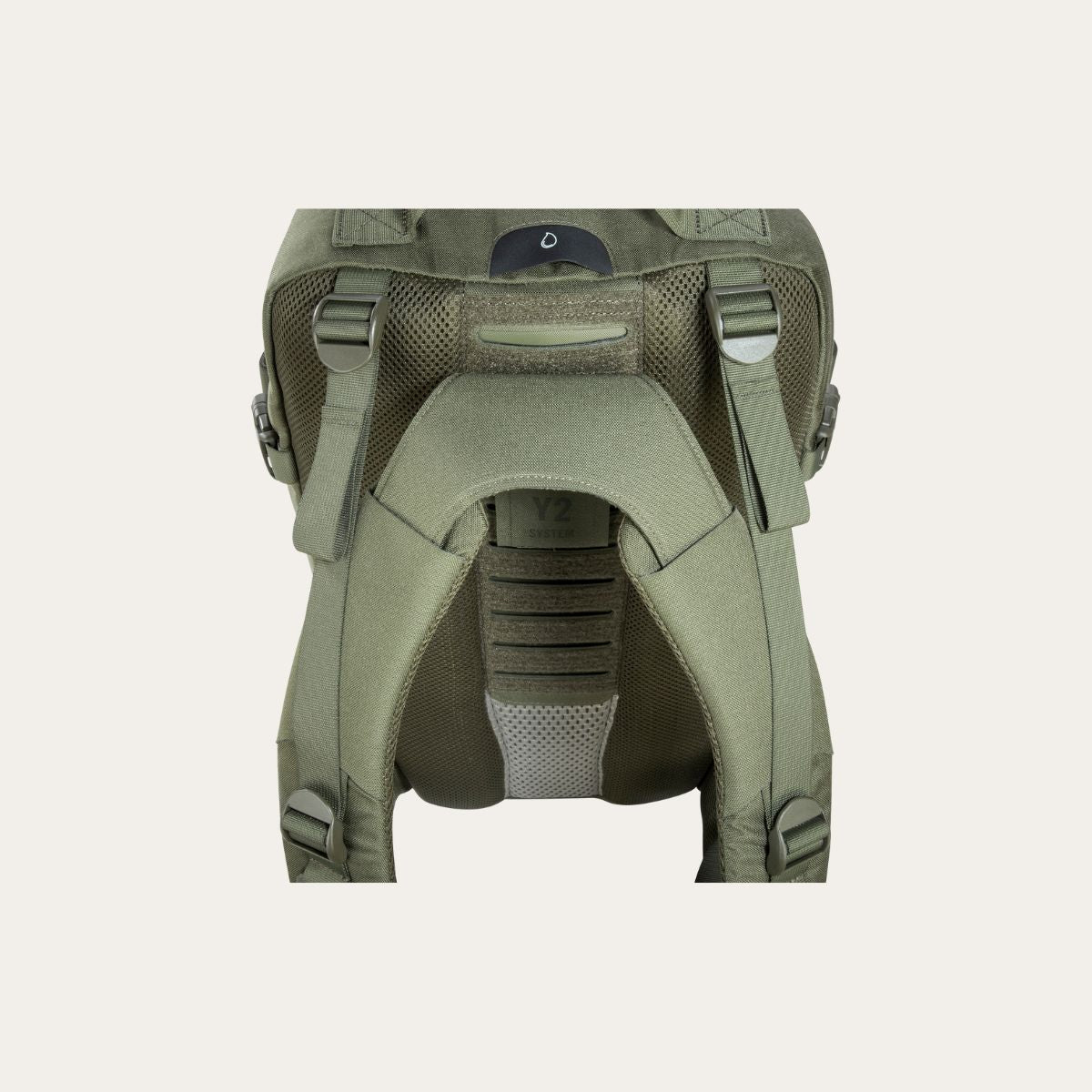 Der ergonomisch gepolsterte Rücken ist Teil des Y2 Tragesystems und mit einem vorgeformten Aluprofil ausgestattet. Eine herausnehmbare Rückenplatte mit individuell formbarer Aluschiene unterstützt die Anpassung an Deinen Rücken. Die ergonomisch geformten Schultergurte sind längenverstellbar und ermöglichen auch das Tragen über schweren Schutzwesten. Der Brustgurt ist höhenverstellbar. Der Hüftgurt ist abnehmbar. Die gepolsterten Hüftflossen lassen sich per Klett abnehmen und sind mit Reissverschlusstaschen ausgestattet.